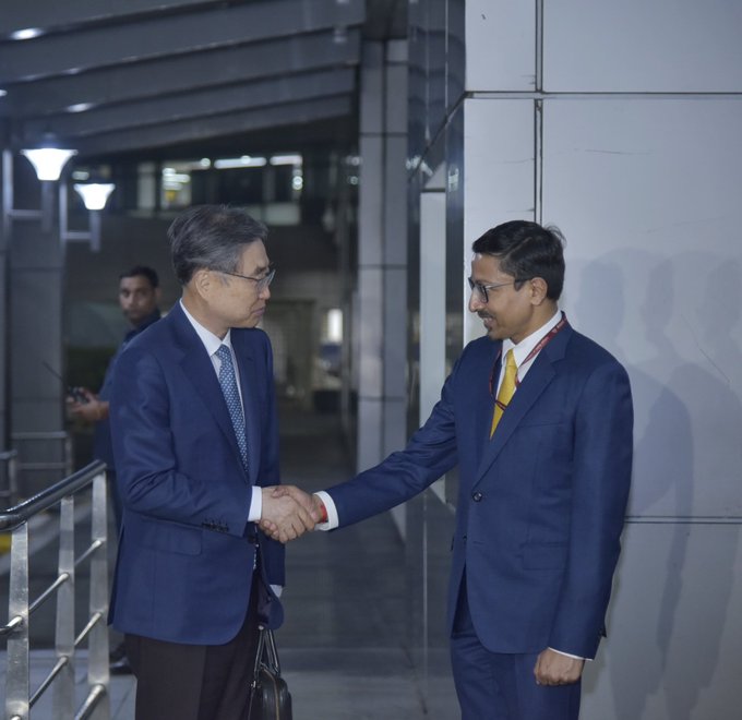 विदेश मंत्री चो ह्यून कल भारत पहुंचे थे। उनके आगमन पर विदेश मंत्रालय की ओर से औपचारिक स्वागत किया गया। मंत्रालय ने सोशल मीडिया प्लेटफॉर्म एक्स पर उनके स्वागत की तस्वीर साझा करते हुए लिखा कि भारत और कोरिया गणराज्य के बीच विशेष रणनीतिक साझेदारी कायम है और दोनों देश भविष्य की चुनौतियों और अवसरों के लिए तैयार हैं।